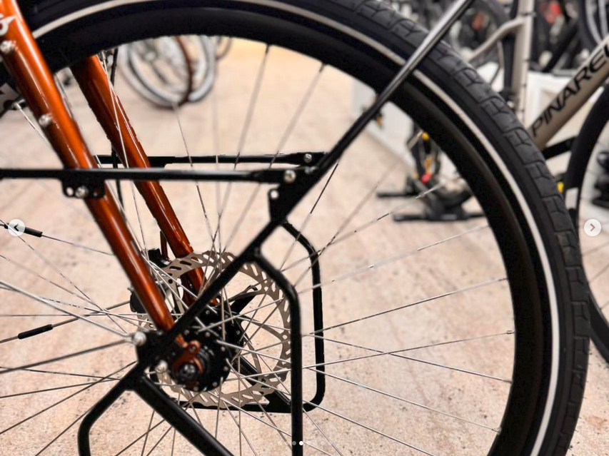Spare spokes, AtranVelo Explorer front pannier rack, Dynamo cable routing, Fitted mudguards